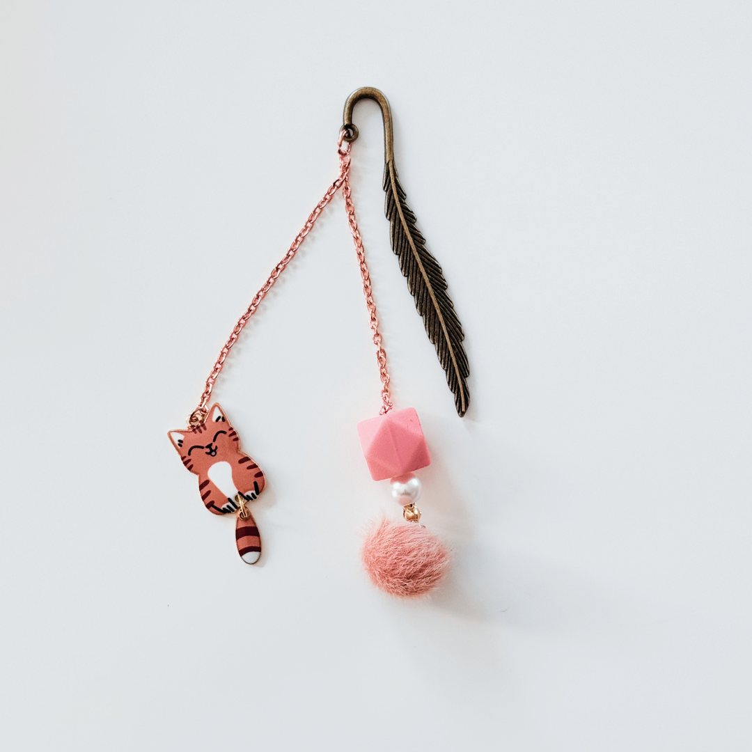 Hook over spine bookmarks. Colorful cats with matching charms.