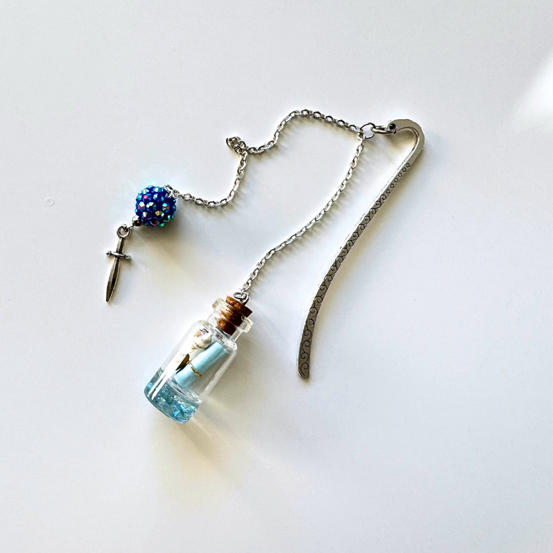 Message in a bottle Chain Hook book mark with charms. (A bit of a water travel/pirate theme as well)